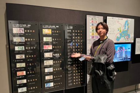 ヨーロッパエリアの奥に進んでいくと私が調べていた「EU」の歴史が掲載されており、さらに深く勉強できました。現在、EU全体の規模でのGDPはアメリカに次ぐ世界2位であり、共同政策を取れるからこそ、より団結力が高まって、経済が強化されていくと思いきや、加盟国間での経済格差であったり、ヨーロッパの永遠の課題である移民問題であったりと悪いところも目立っていることを学びました。1つの経済圏に国々がまとまることによって、各国のパワーが重なったとしても、格差や移民問題があると、効率良く経済が回らないことを勉強しました。