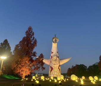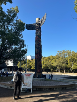 私たちは11月末にフィールドワークにて吹田市にある国立民族学博物館(みんぱく)に行きました。ここでは、さまざまな国の歴史や文化がエリアごとに分かれており、とても勉強しやすく、親しみやすい博物館でした。みんぱくは千里万博記念公園内に併設されており、みんぱくへ行く前に公園内をゼミのメンバーと一緒に歩きました。