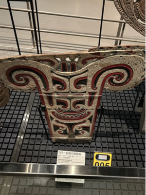 また、船首も独特で綺麗な模様が描かれていて色付けも綺麗にされていました。私の船首のイメージは特に特徴がないものだと思っていましたが、展示されていた船首は壁画とかにありそうな模様で面白いと感じました。