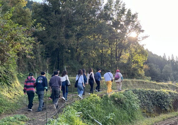 11月には、熊本県美里町で2泊3日のゼミ合宿を行いました。特に印象的だったのは2日目の美里町のフットパス・イベントに参加し、地元の方々と一緒にまち歩きを行ったことです。美里町の方の温かさに感動し、自然の豊かさや怖さ、歩くことの楽しさを学ぶことができました。また、ゼミ合宿を通じてゼミ生同士の仲が深まったと感じました。