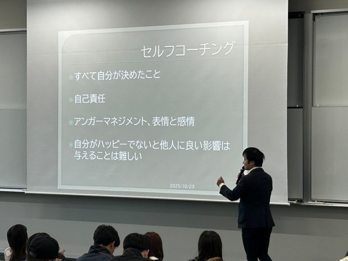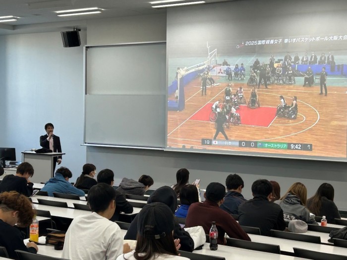 2025年10月23日(木)、スポーツビジネスキャリアの講義にて、ゲスト講師として元安陽一さんをお迎えしました。元安さんは現在、車いすスケットボール女子日本代表のアソシエイトヘッドコーチ、京都ハンナリーズアカデミーのアドバイザーとしてご活躍されています。