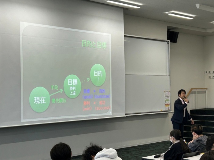 講義では、これまでの資格取得や豊富な経験をもとに、スポーツとの向き合い方についてお話しいただきました。特に、練習の質を高めることの重要性や、失敗を恐れず挑戦する姿勢が自信につながるというメッセージが印象的でした。