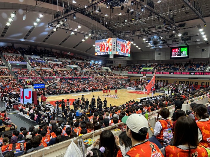 試合では、レバンガ北海道の富永啓生選手が不安定な体勢から放った美しい軌道のスリーポイントシュートに心を打たれました。今後の日本での活躍にも大いに期待しています。そして、ホームチームである大阪のさらなる盛り上がりにも注目したいと思います。