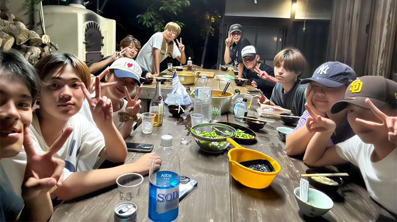 古民家に宿泊するのが今回が初めてだったけど、大阪とは違い虫が多すぎたけど雰囲気が昔風でジブリの世界にいるような感覚でした。自炊や鍋作りもみんなで手分けして音楽をかけながら作ったのもとてもいい思い出です。女子だけでなく男子も皿洗いや色々気づいて行動してくれてスムーズにできました。ホテルに泊まることもできたと思うけど古民家だったから、これだけ楽しく過ごせたのだと思います。