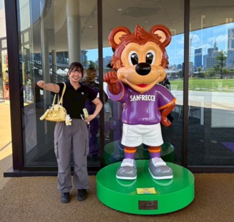 スタジアムツアーではサンフレッチェが創設されてから現在までのユニフォームや選手が展示されており、今のようにJ1の中でも上位を取り続けられるチームになるまでの背景などを知ることができました。12月の研究発表会までに他チームとのスタジアムの比較やチームの歴史をより深掘りし、サンフレッチェ広島の良さやサンフレを通して広島の歴史、Jリーグの良さなどを伝えられようにしてより深い知識にしたいと考えています。