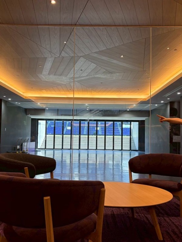 選手入場口のすぐ後ろのラウンジ。こうしたスペシャルな体験ができるのも魅力の一つ