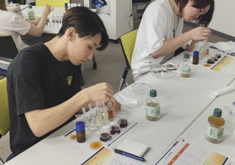 私たちが日常的に接している飲料や食品、さらには化粧品や洗剤といった製品の背景には、こうした高度な香料づくりの技術があることを改めて認識しました。同時に、企業が一つひとつの作業を丁寧かつ慎重に行う姿勢から、「品質としての香り」がいかに大切に扱われ、商品化の過程で非常に重要な役割を担っているのかを実感できた貴重な機会となりました。