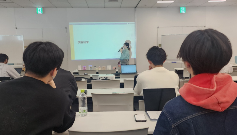 報告後には、塩野香料株式会社の岡本様より、香料メーカーとしての実務経験を踏まえた質問やアドバイスをいただき、学生たちは実際の製品開発やマーケティング調査においてデータをどのように活用していくべきかについて理解を深める貴重な機会となりました。