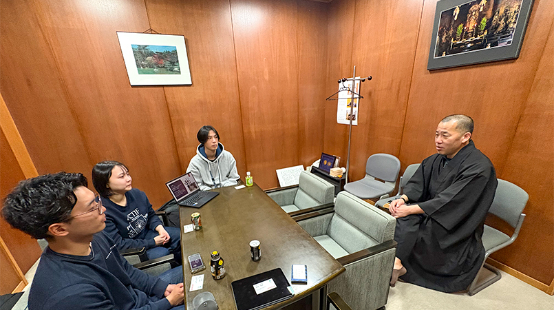 今年度は前回12月に八十八ヶ所ウォークにご参加いただく予定でしたが、あいにく近隣で熊が出没してしまい中止にせざるを得ず、仁和寺の境内を廻っていただきました。今回は、御室八十八ヶ所霊場を活用したイベント企画のご提案を学生の皆さまからいただきました。「人と人をつなぐイベントの開催」「足湯カフェをつくる」「木を使った体験」の3つの企画はとても興味深く、実現可能性の高い内容でした。今後は互いに協力をしながら、今秋開催を目標に予算などを検討しながら、どれかひとつのイベントの開催を実現していきたいと思います。学生の皆さまには、これからの活躍を大いに期待しております。