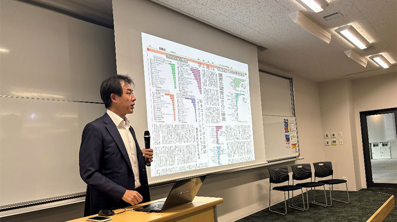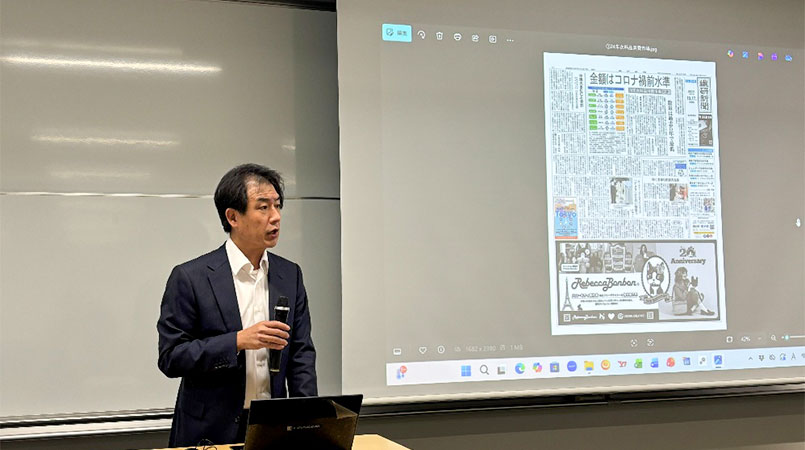 繊研新聞社の小畔先生の講演により、業界の最新動向を深く学ぶ貴重な機会となりました。続くアパレル企業に内定した4年生とのパネルディスカッションでは、内定者が自身の就活体験談をざっくばらんに話してくれたことで、1・2・3年生の業界や就職活動に対しての理解も深まったと思います。「適切な準備を通じて納得のいく就職活動が実現できる」というメッセージが学生に届き、就職活動への意欲向上につながることを期待しています。