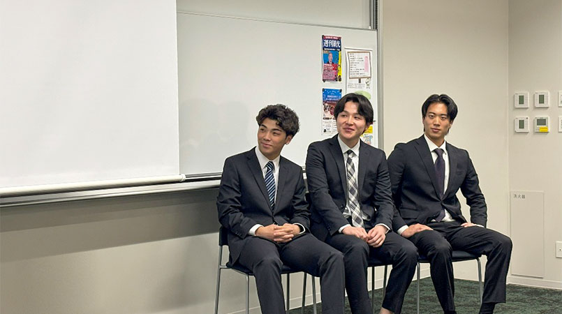 大手アパレル企業に内定を頂きました池澤ゼミ4年生3名に集まっていただき、自己紹介をしていただきました。