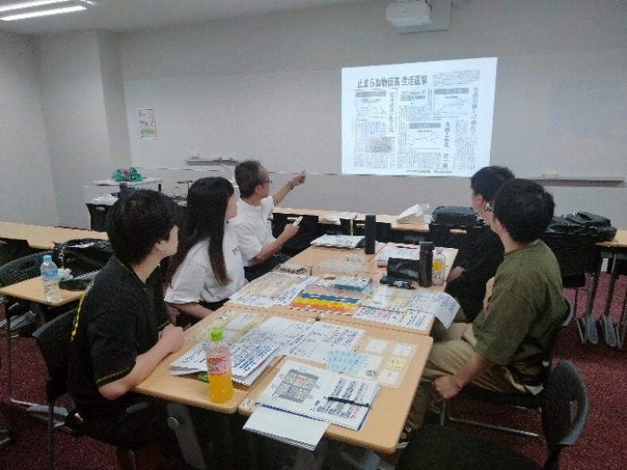 講義は、税金、社会保険料、諸手当、控除額などが記載されている「給与明細」の見方から始まり、それを基に「支出(お金の使い方)の見直し」や「預貯金・投資(将来のお金の準備)」などを学生に考えさせる内容でした。そして、本講義の最終日であった6月23日は、株式投資ゲーム(ブルサ)を行い、関連する実際の新聞記事を確認しながら、株価と企業活動や経済・社会との繋がりについて理解を深めました。