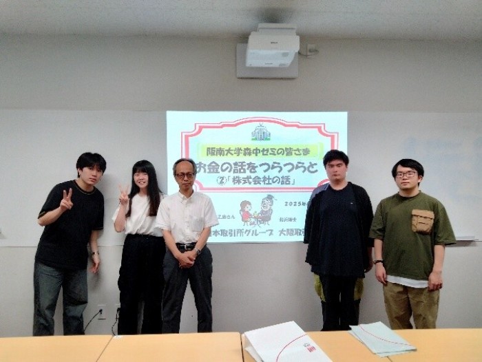 流通学部4年生森中ゼミでは、大阪取引所のご担当者様をお招きし、社会人の経済活動について4回に渡って講義を行っていただきました。