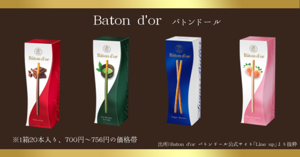 グリコは、2012年から、百貨店販売を想定した、高級ポッキーとして「バトンドール」というブランド名で、高級ポッキーの販売をはじめました(当時の販売価格は1箱500円)。バトンドールは、百貨店では手ごろな価格であったこと。当時は、阪急百貨店うめだ本店や髙島屋大阪店など限られた店舗でしか購入できなかったこともあり人気を博しました。現在では、オンラインショップなどでの販売はあるものの、百貨店の人気商品の1つとして定着しています(『週刊ダイヤモンド』2015年8月29日号、102-103ページより)。