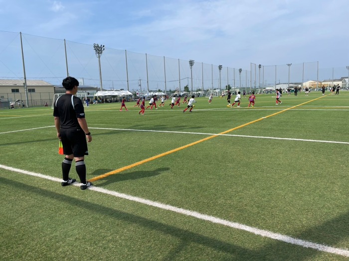 今回久しぶりに副審をさせてもらいました。審判の役割は試合の流れを妨げずコントロールすることであり、そのためには判断に悩まず判定することが大切だと感じました。「大会に関わる全ての人を尊重し、常にフェアプレイに徹する」ことが今回のメインテーマであり、様々なチームを見ていると、フェアプレイ精神がしっかりしているチームほど、結束力があり良いサッカーをしているんだと学ばされました。