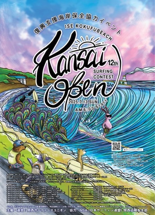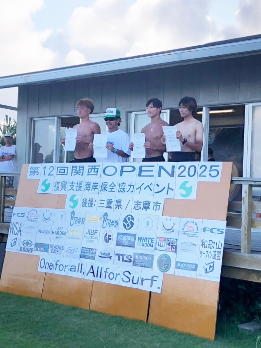 2025年7月13日に三重県伊勢市の国府の浜で行われた第12回関西オープン2025のメンAクラスで準優勝することが出来ました。この大会は、主催が関西サーファーズユニオンで、その他にも多くのサーフショップやサーフブランドが協賛する形で運営されています。東日本大震災をきっかけに復興支援イベントとしてスタートして今年で12回目となり、今大会には324人がエントリーしました。昨年は、石川県能登にエントリー費の一部が寄付されています。