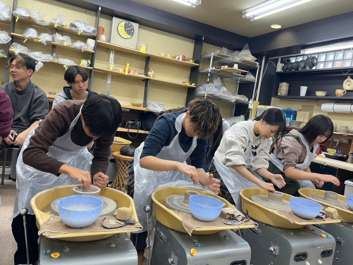 1年生ゼミのフィールドリサーチの一環で、陶芸体験会に参加しました。2名の講師が4グループ(各グループ7から10名)に対して順番に30分から45分程度指導してくださり、参加者全員が見事な作品を完成させることができました。以下に参加した学生が書いた感想を記します。
