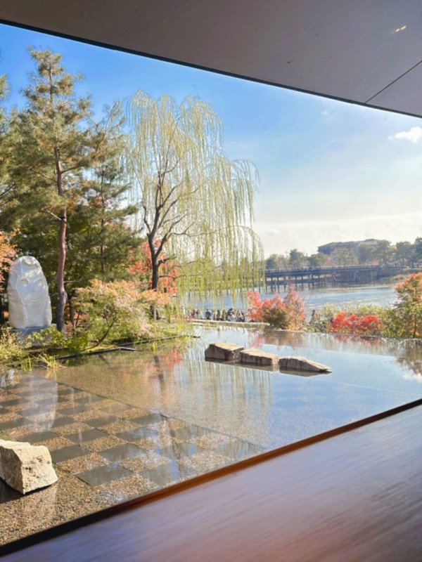 嵐山といえば渡月橋や桂川が有名ですが、橋の上は観光客でいっぱいです。このカフェは大きなガラス張りで設計されていて、ゆっくり座って渡月橋を眺めることができました。これがこのカフェの最大の価値なのではないかと思いました。