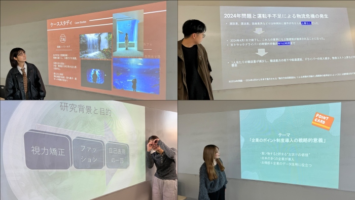 新谷ゼミでは、ゼミでの学びの集大成として卒業論文の発表会を行いました。卒業論文を作成するだけでなく、5分程度に要約して話すということで、より理解が深まったのではないかと思います。また、ほかのゼミ学生がどのような卒業論文を作成したのかを知る機会にもなりました。