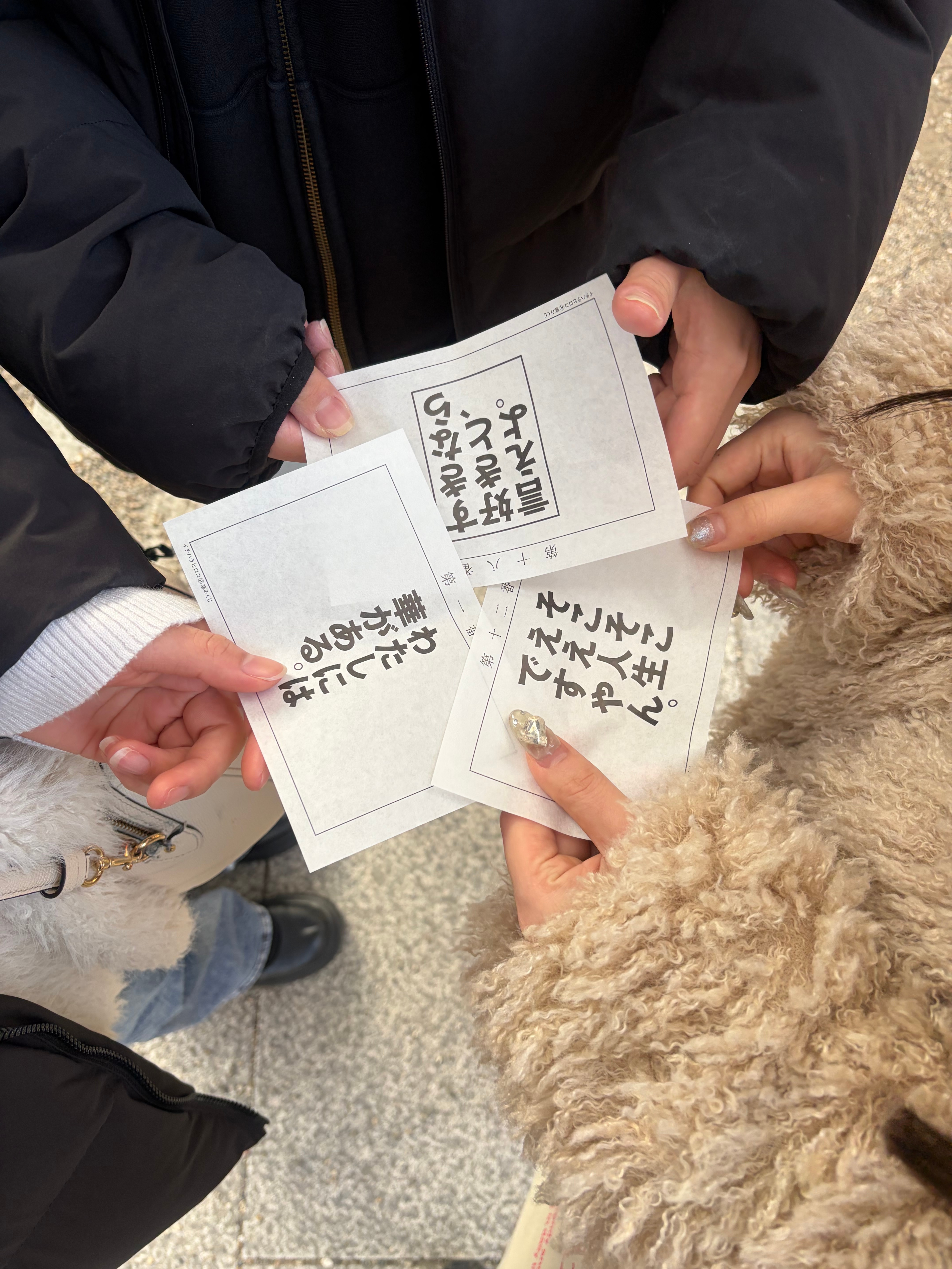 多くの人が恋みくじを引いたあと、内容を友人と見せ合ったり、写真を撮ったりしています。恋みくじを引くこと自体が楽しい体験になっていると感じました。