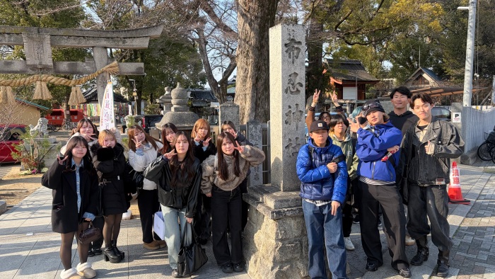 新谷ゼミでは、教室で学ぶ経営学の内容を、実際の場所を訪れて考えることを目的としてフィールドワークを行っています。今回は、大学の近くにある布忍神社を訪問しました。布忍神社は「恋みくじ」で有名な神社で、多くの人が訪れています。このフィールドワークでは、なぜ布忍神社が多くの人を惹きつけているのかを、実際に見て、体験して考えました。
