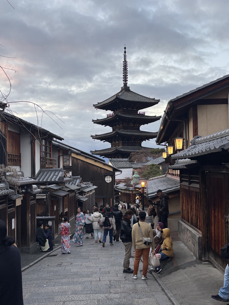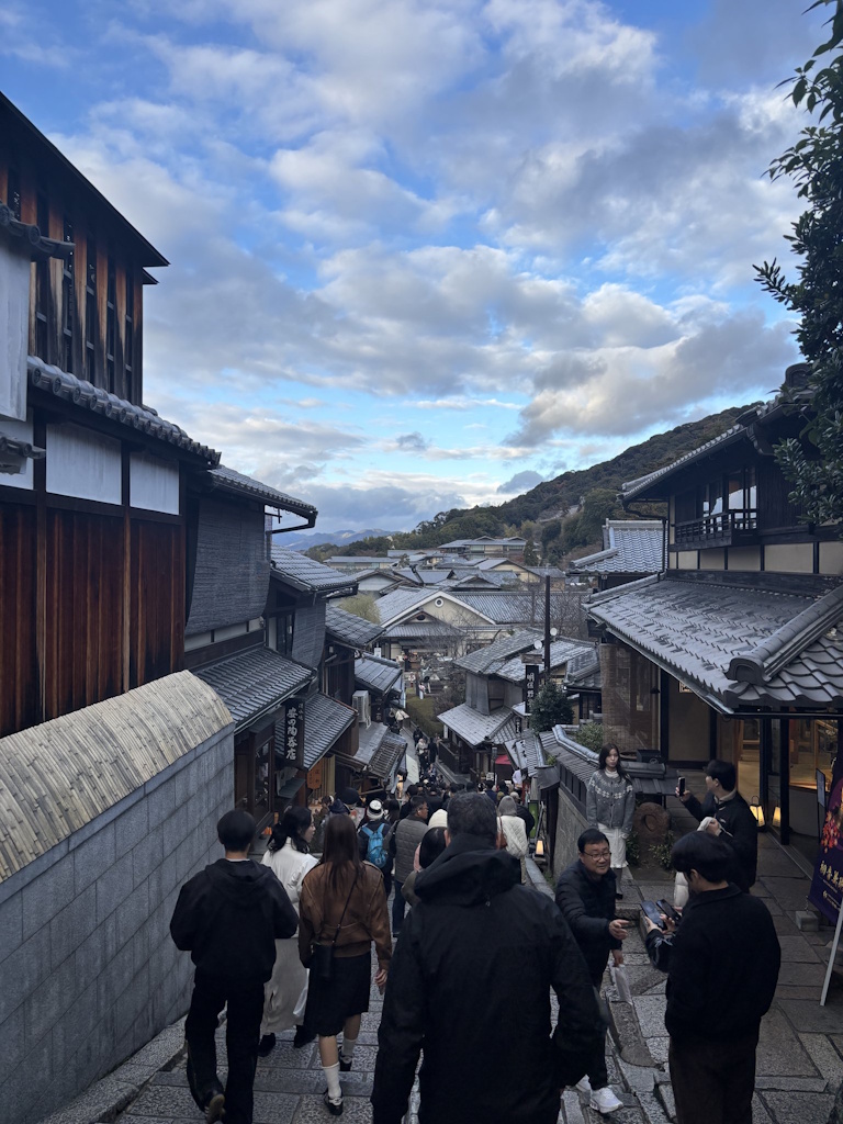 石畳の坂道には、京都らしいお土産屋さんや甘味処が立ち並び、着物姿の観光客の姿も多く見られます。歩いているだけで、京都ならではの雰囲気や歴史の空気を感じることができる、とても魅力的な通りです。