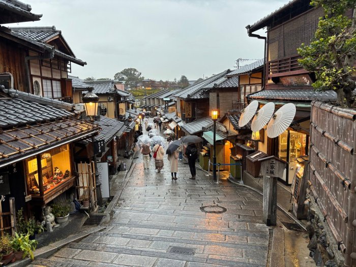石畳の坂道を歩いていると、まるで昔の京都にタイムスリップしたような気分になります。にぎやかさの中にも落ち着いた雰囲気があり、とても印象的な場所でした。