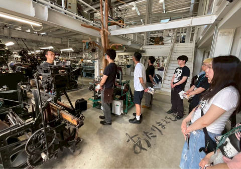 植山織物さんでは、実際にモノづくりの現場を見せていただくとともに、国産生地と海外製生地との違いと、その違いが生まれる理由について教えていただきました。
