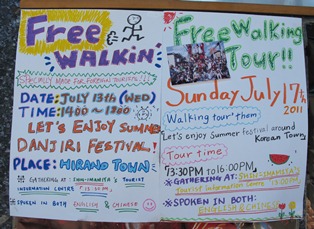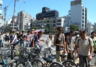 今回のまち歩きでは,もうひとつ大きな不安がありました。それは参加してくれるFITがいるのか,という不安です。いつもの年ならば,夏のハイシーズンの新今宮には,毎日500名近いFITが宿泊しています。ところが今年は原発事故の影響で,新今宮でもFITの宿泊者は激減しています。新今宮TICを運営していても,外国人が来ない,そもそも道を歩いていない…見かけない…という日々が続きました。