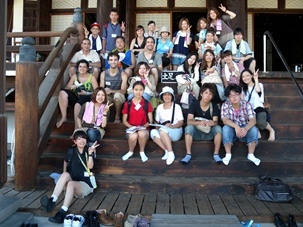 本殿前で少し休憩してから,16時半頃,4回生のタン・イーヘンから,ツアー終了を告げる挨拶がありました。最後もFIT参加者から拍手がわき起こり,その後は握手大会となり,名残を惜しみ解散しました。