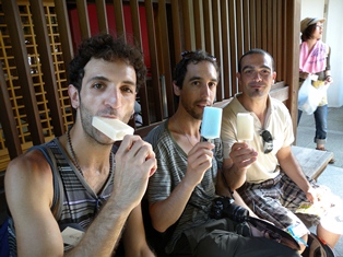 ガリガリ君を食べるスペイン人参加者たち