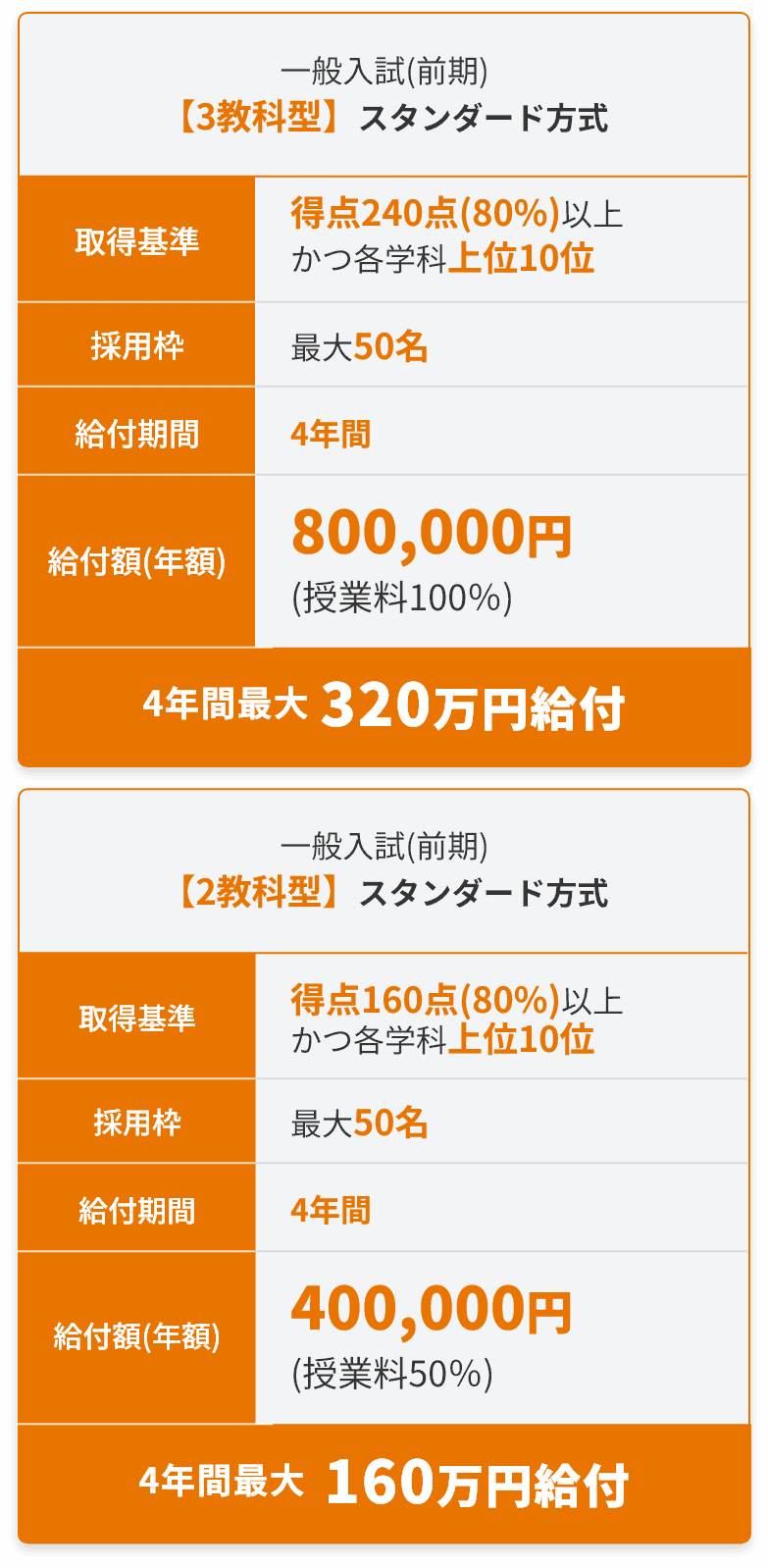 ※ 上記のほかにも、大学入学共通テスト利用入試(前期)も給付型奨学金制度の対象となります。
