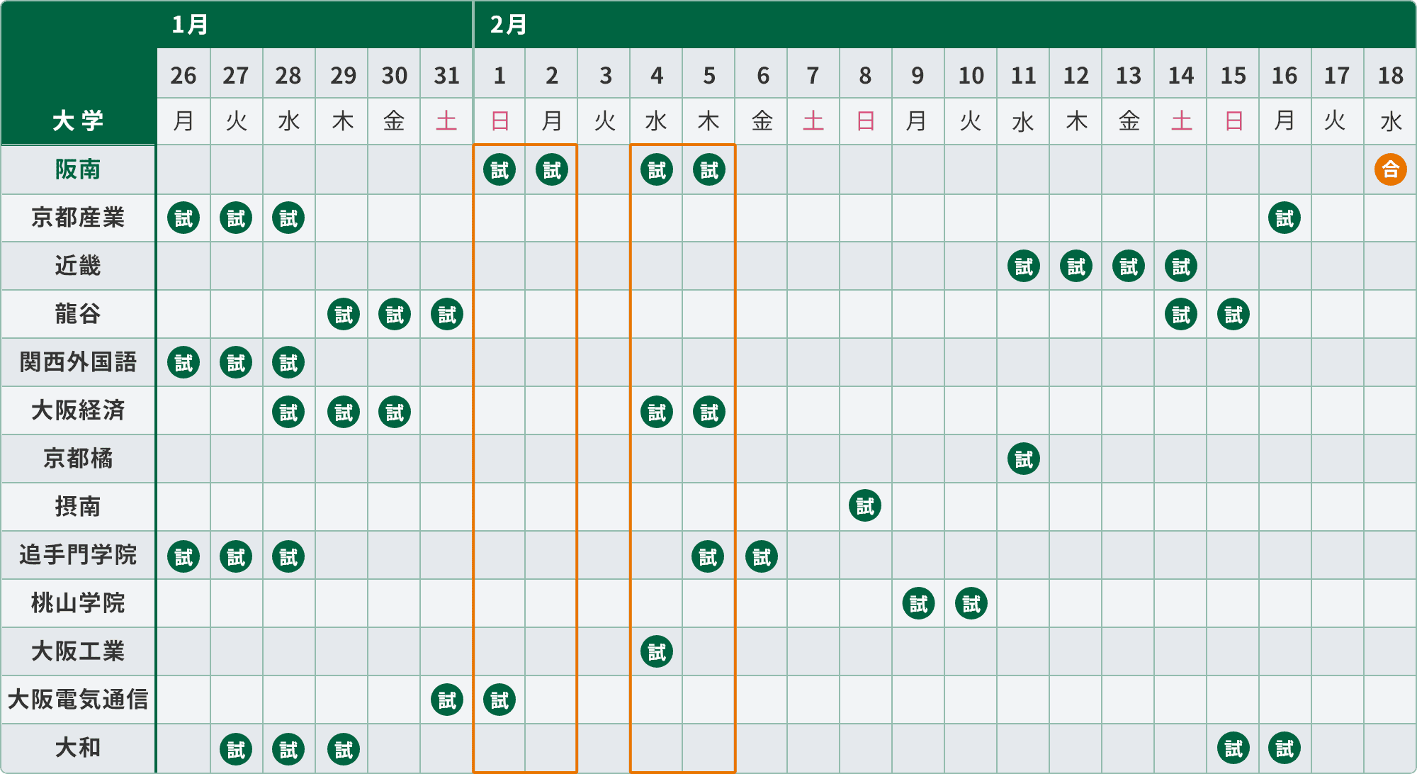 阪南大学の一般入試(前期)は、他大学の試験日と重なることが少なく、