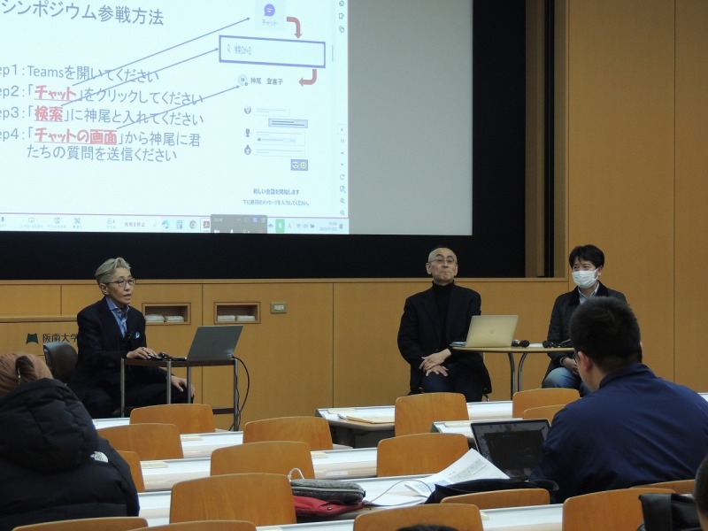 今回のシンポジウムではチャット機能を利用しましたが、これが、受講者の知的好奇心を探ることが素晴らしい方法だとわかりました。また、学生の皆さんの質問の鋭さに驚きました。どの質問でもその核心を究めればりっぱな論文になります。ぜひ深堀して、阪南大学学会の学生懸賞論文に応募する、あるいは卒業研究のテーマにしていただけると嬉しいです。