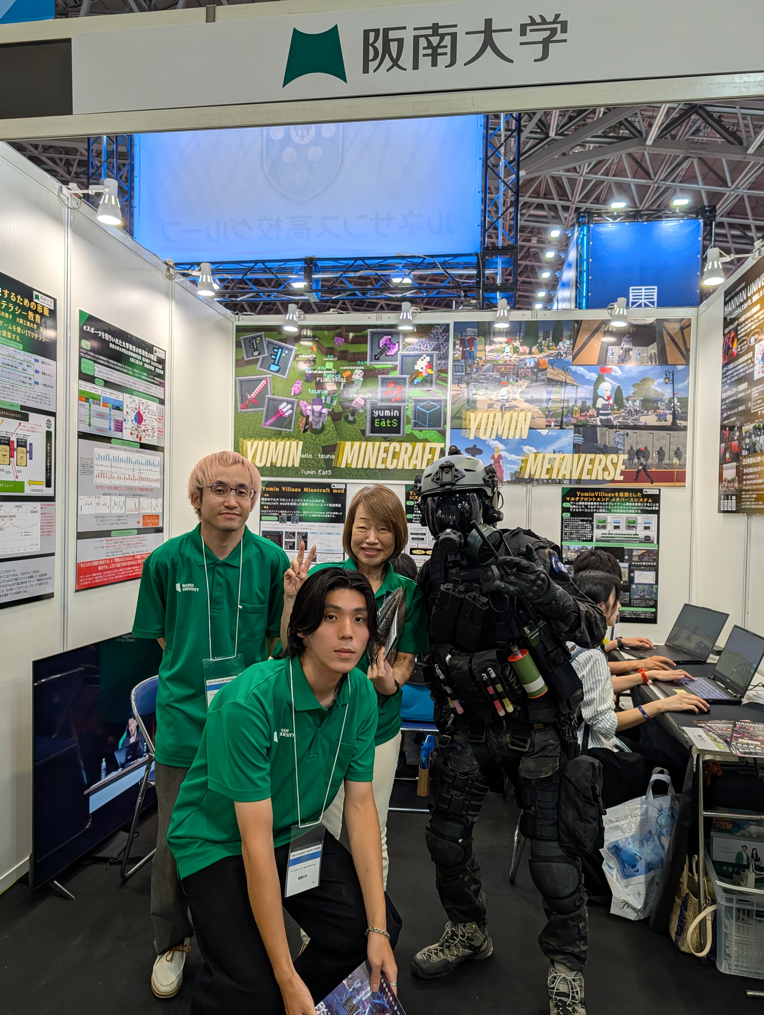 阪南大学は他の大学や専門大学の出展内容とは異なり、メタバースやマインクラフトシステムのバックエンドシステム全体を