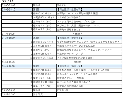 櫻井ゼミ(経済学部)・加賀美ゼミ(経営学部)・三好ゼミ(総合情報学部)・永田ゼミ(国際学部 国際コミュニケーション学科)・福本ゼミ(国際学部 国際観光学科)に所属する学生15チームが参加、学部の垣根を越えて、それぞれのゼミ生が取り組む課題をまとめ、プレゼンテーションを行いました。