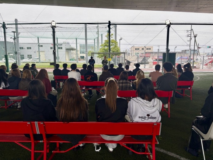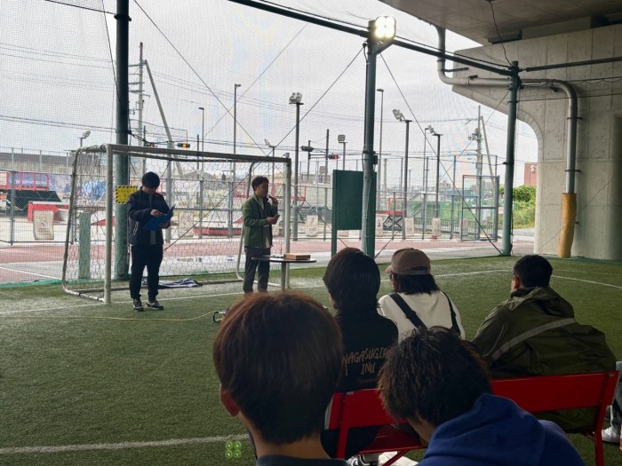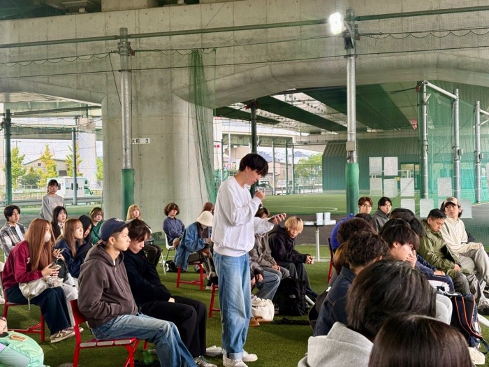 阪南大学1年生プレゼミ(水3ブロック②)は、授業の一環として「スポーツパークまつばら」を運営するミズノスポーツサービス株式会社と経営課題に解決に向けた提案をグループで取り組んでいます。2025年10月22日に「スポーツパークまつばら」を訪問しました。