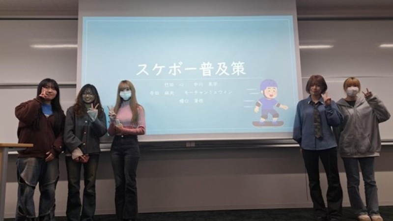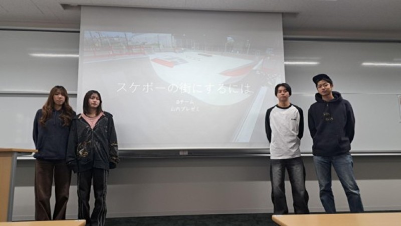 学生たちの発表では、フットサルコートをフットサルの利用目的以外にも活用し、多様な需要を取り込むための新しいイベント案やサービス提案、スケボーに興味を持つ初心者が「始めやすく、続けやすい」まちを目指した環境整備のアイデアが示されました。また、小学生に「スケボーのまち まつばら」をテーマにしたポスター制作を依頼し、市への学習意欲を高める仕組みづくり、地域の商業施設や大学を巻き込んだユニークでエンターテインメント性の高いプロジェクト、大学生アンケートをもとにした“働きたくなるスポーツ施設”に向けた改善案など、松原市の特性を踏まえたビジネス目線での提案が発表されました。