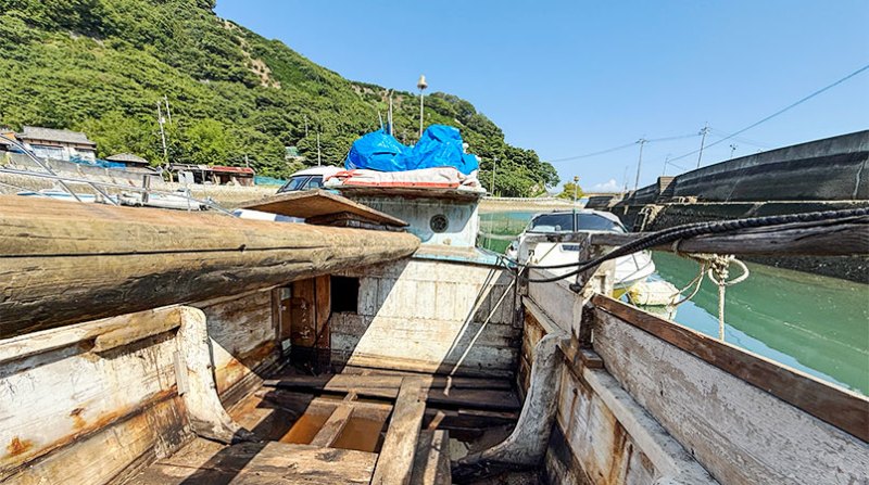 瀬戸内海・大崎下島は、柑橘産業とともに発展した島です。かつては島の港から多くの木造船がみかんを運び出していましたが、高齢化や橋の開通により、船の文化は急速に失われつつあります。そこでこのプロジェクトでは、記念保存ではなく、実際に活用される船として次世代に引き継ぐことを目指しています。