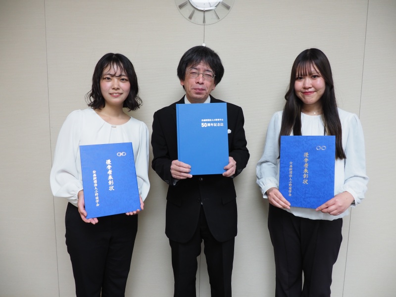 令和6年度中の学業成績優秀者として、冨里真優さん(流通学部流通学科・4年生)と、梅野愛瑠さん(流通学部流通学科・4年生)の2名が認定されました。令和6年度中の学業成績優秀者は、小野奨学会奨学生720名の中から選出された31名のうちの2名となります。