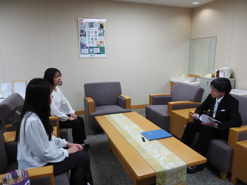 この度、学業成績優秀者に認定されたことを受けて、冨里さん、梅野さんと平山学長による対談が行われました。