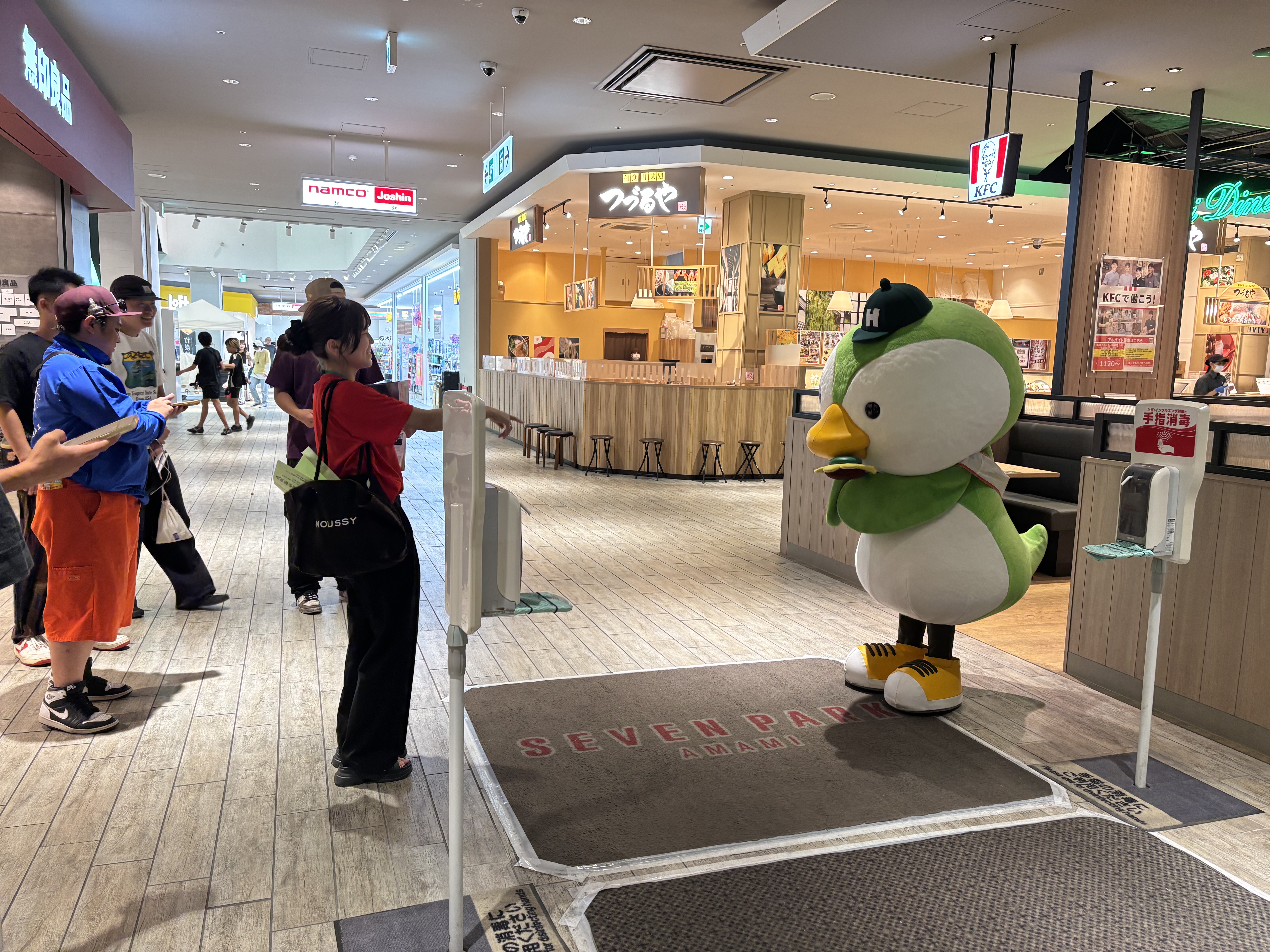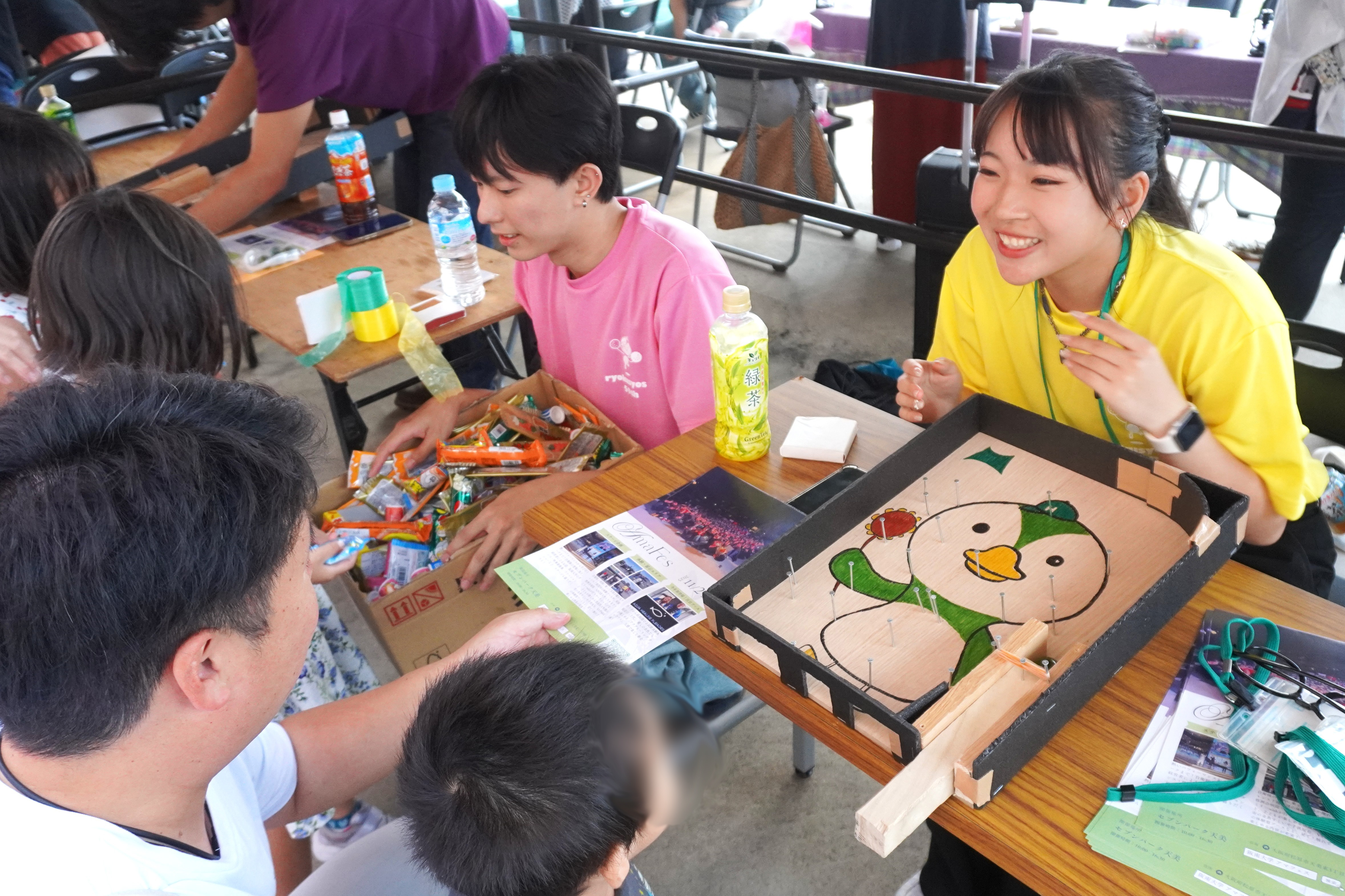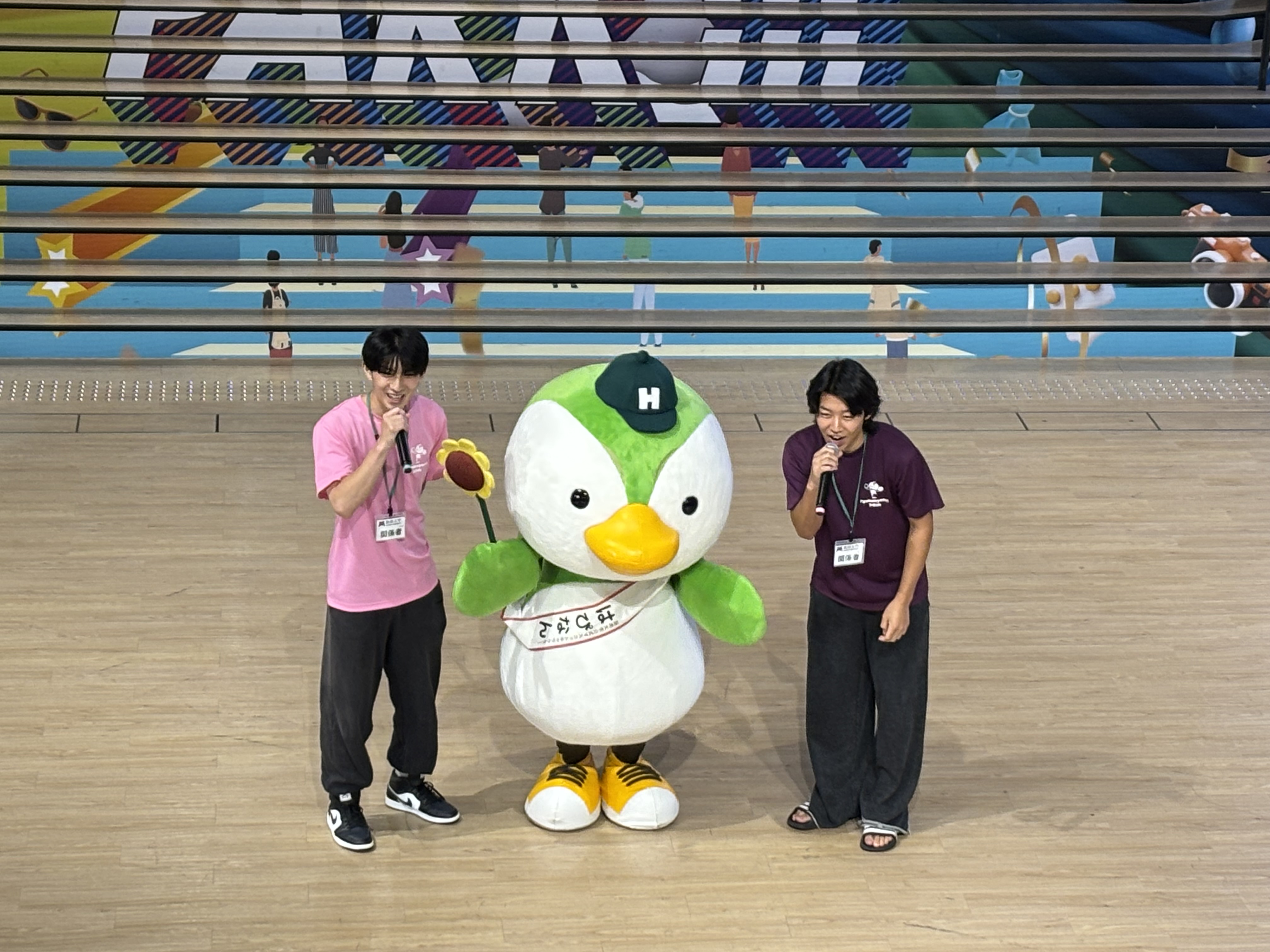 本学からは、11月2日(日)、3日(祝・月)にセブンパーク天美で開催される大学祭地域振興イベント「アマフェス」の宣伝・広報活動として、大学祭実行委員会が中心となって来場者の方にイベント情報を周知しました。会場では4日間にわたりまつばら体験横丁の出店や、マスコットキャラクターの「はぴなん」も登場し、チラシ配布やステージ上での広報、写真撮影などで会場を盛り上げました。