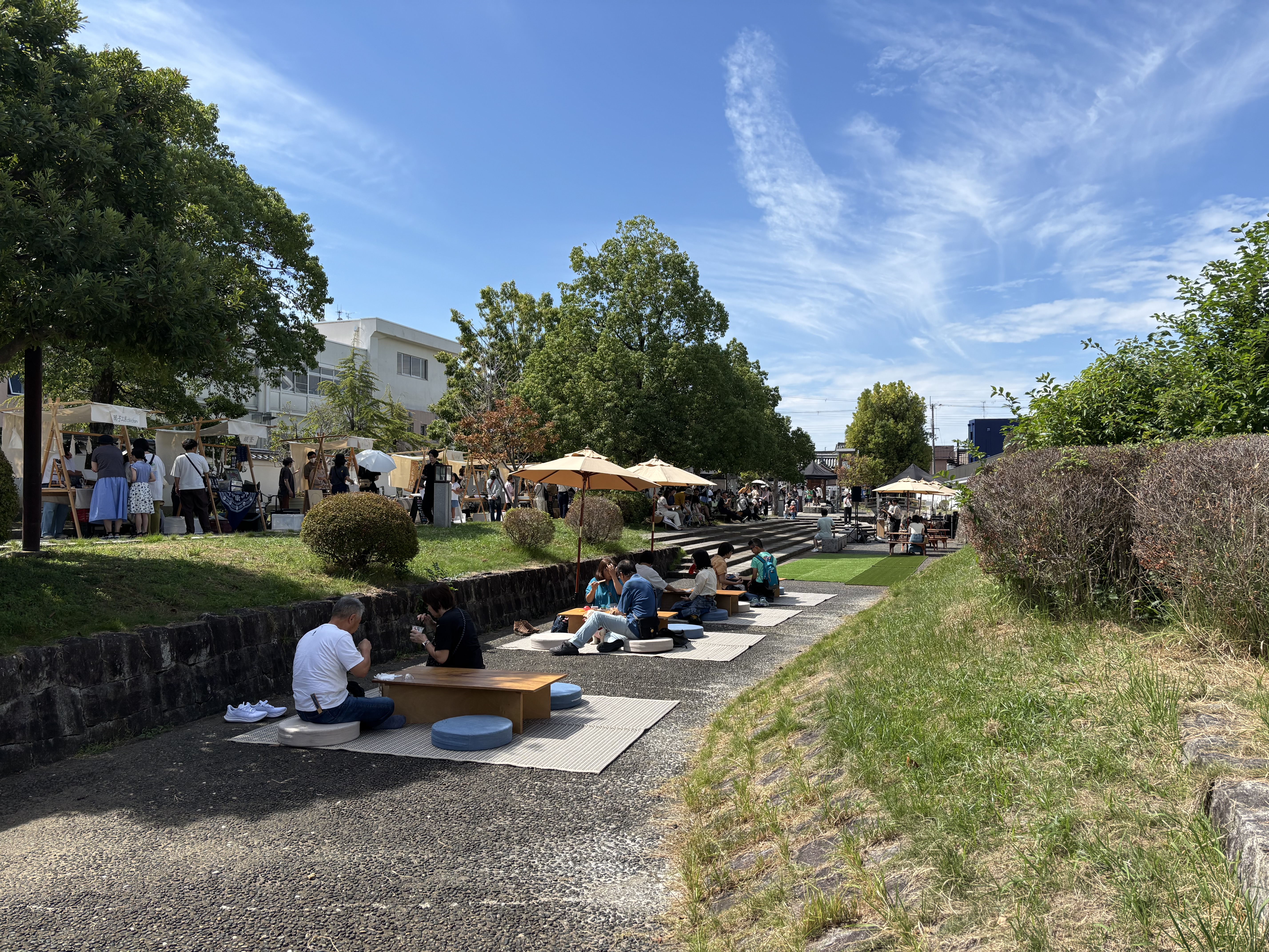 に包まれました。青空市では約37店舗が出店し、バラエティ豊かなグルメや雑貨、体験ブースが並ぶなか、屋外ライブステージでは生演奏が軽やかな音色を響かせていました。