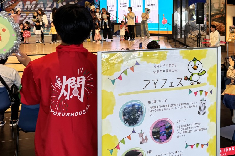 本学では、第59回大学祭「緑松祭」に合わせ、産官学連携によるイベント「アマフェス」を11月2日(日)・3日(祝)にセブンパーク天美にて開催します。本学大学祭実行委員会が中心となり、地域の魅力を学生の力で多数企画し地域貢献を目指すものです。