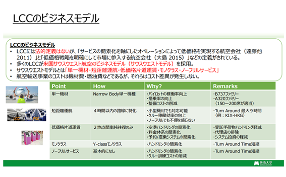 ②空の旅がより身近になったLCC(ローコストキャリア/低価格航空会社)の仕組みやビジネスモデルを学ぶ内容