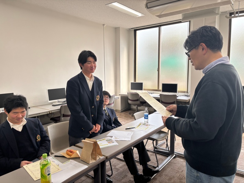 イベント終了後には、参加した阪南大学高等学校の生徒の皆さんに、今回の感想や反省点、次回取り組んでみたいこと、こどもよこちょうのミッションについてお聞きしました。その中では、「地域に密着したイベントを行うことで、大学をより身近に感じてもらえる」、「障がいのある方への理解を深めることにつながる」といった意見が寄せられ、本イベントが地域交流と相互理解を深める場となっていることがうかがえました。また、次回に向けては、「人々が交流し、つながれる企画を行いたい」、「自分たちで何かを作って販売してみたい」、「スタンプラリー形式で複数の場所を巡ると景品がもらえる企画をしてみたい」といった前向きなアイデアも挙げられました。最後に、阪南大学高等学校の生徒の皆さんは、2025年度ワンユニ特別ゼミのプログラム修了者として、修了証書を受け取りました。