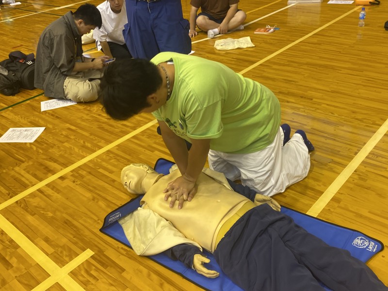 今回は例年実施している、普通救命講習会(AED講習会)に加えて、クラブ間での交流を図り、阪南大学の課外活動全体を盛り上げるきっかけにするため、グループワークを実施しました。